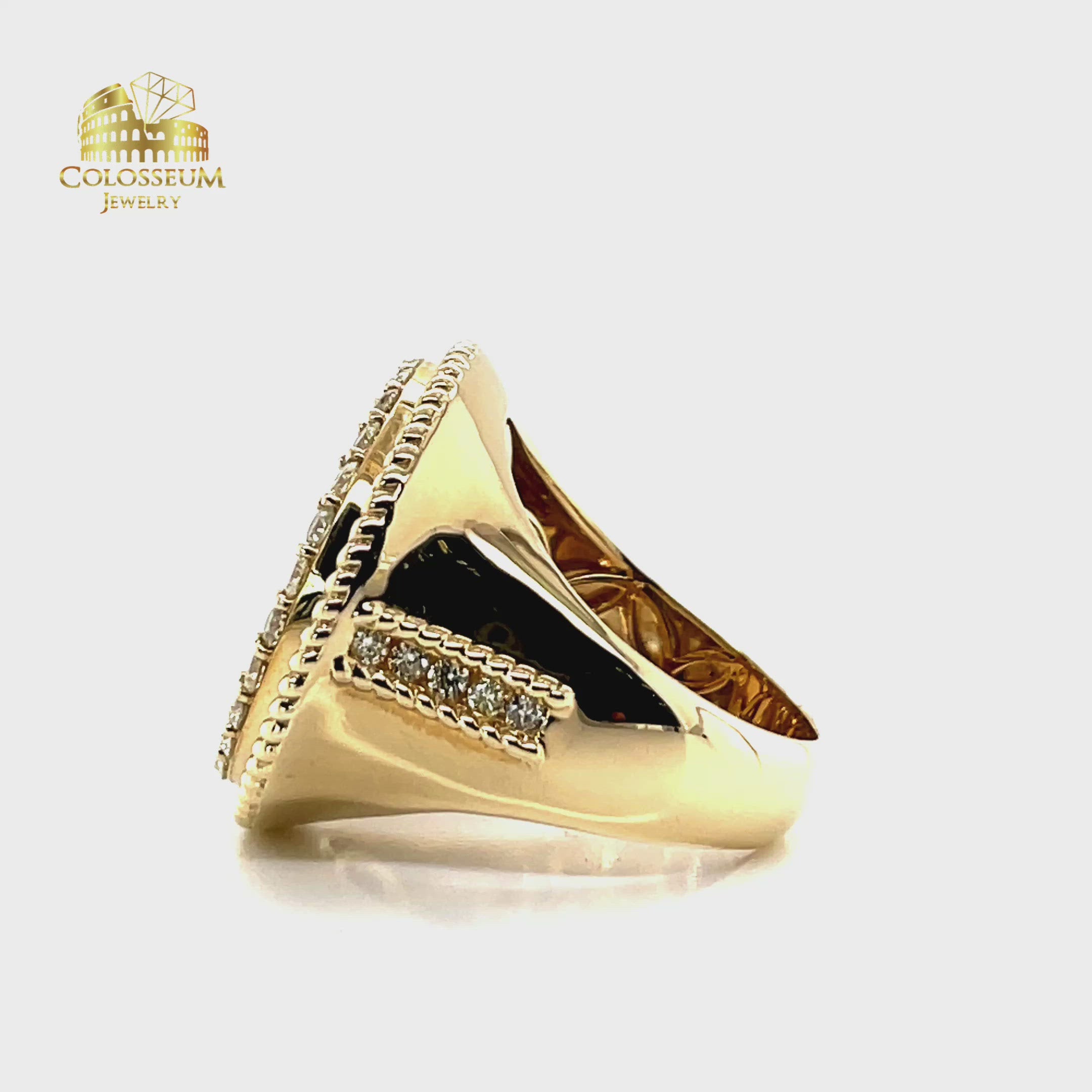 Handcrafted by Colosseum Jewelry, this custom ring has all its diamonds hand-set with the finest artistry by a master diamond setter. This piece is entirely made of gold.