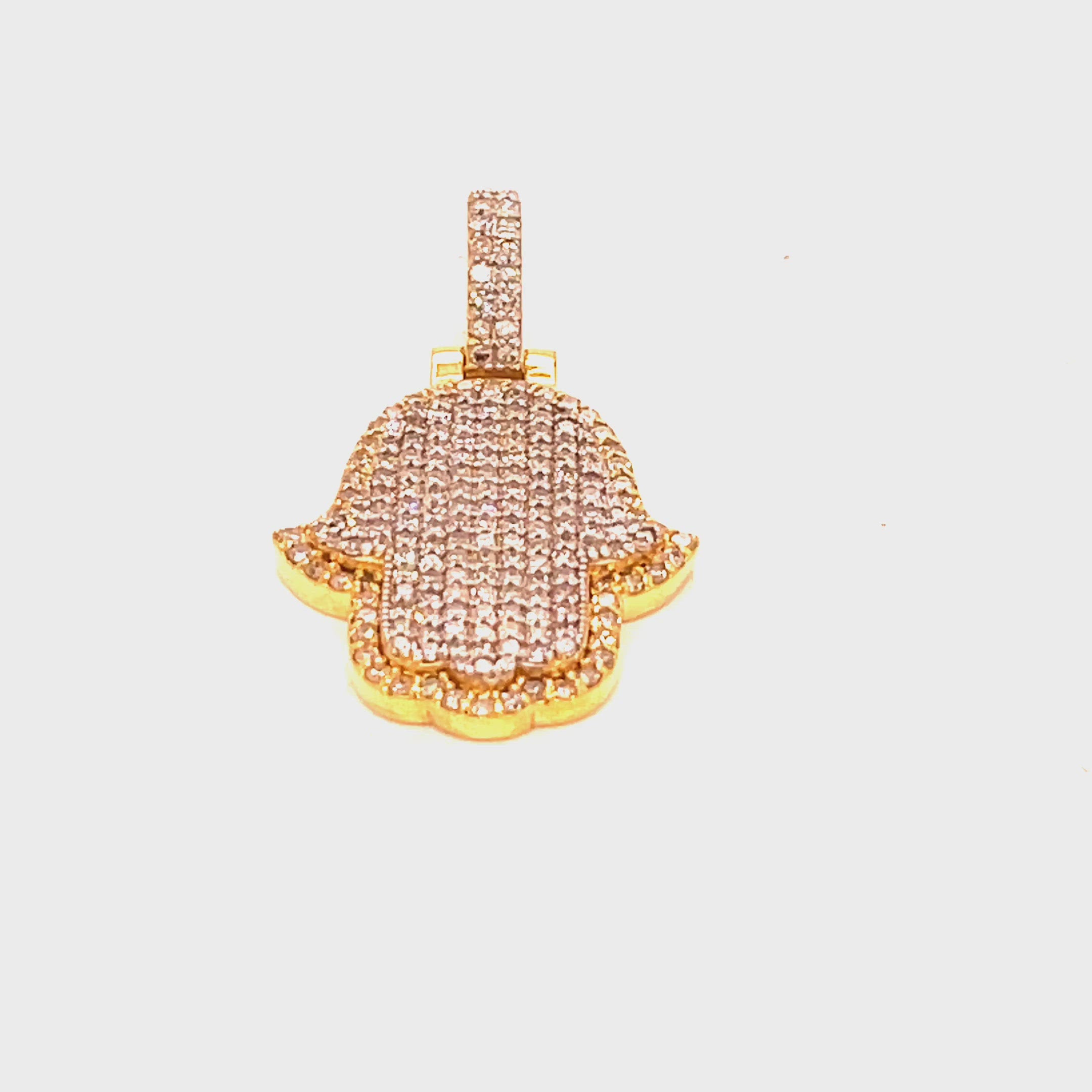 2 INCH 10KY 1.48CTW DIAMOND HAMSA HAND PENDANT
