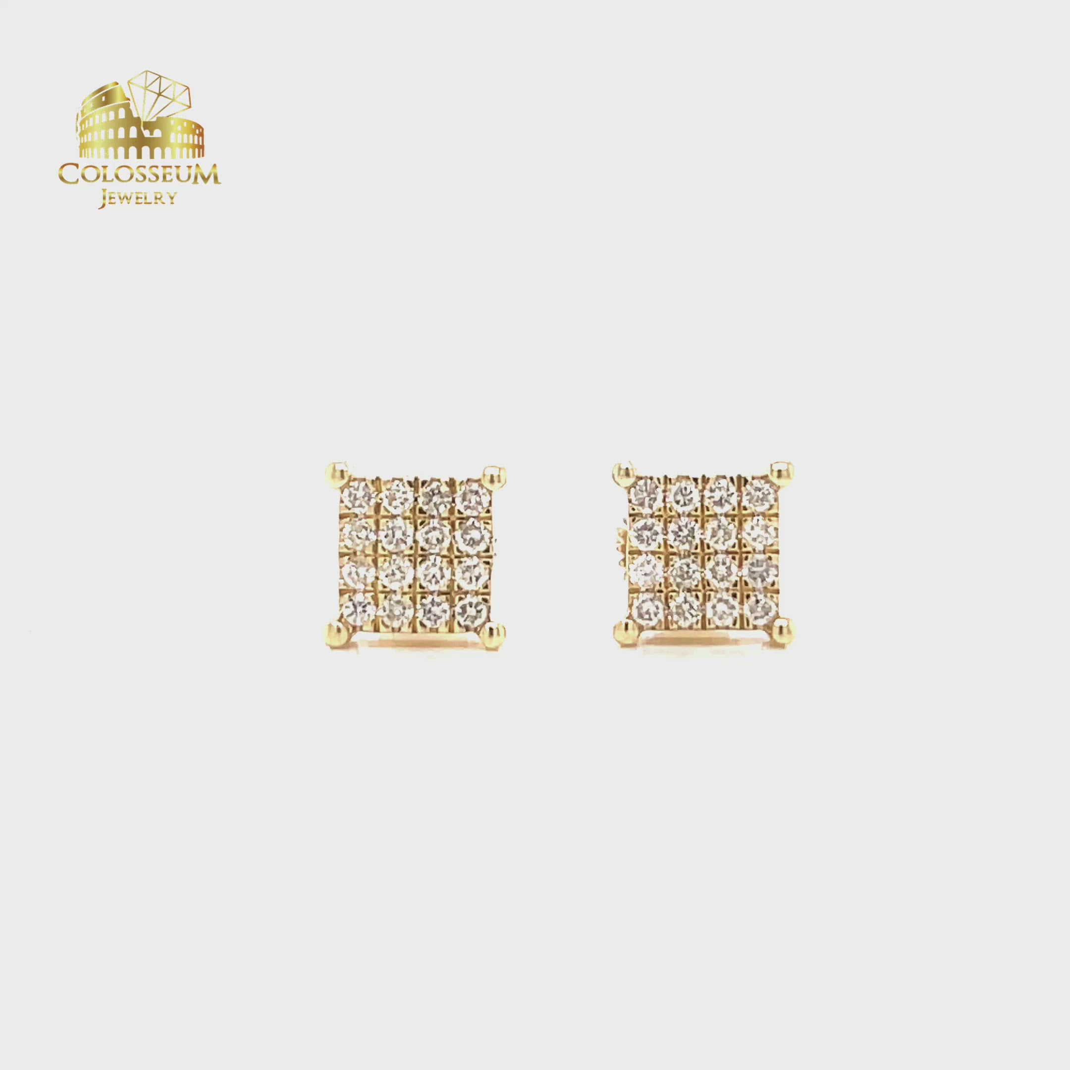 10K Yellow Gold Square Diamond Cluster Earrings - 0.39ctw
