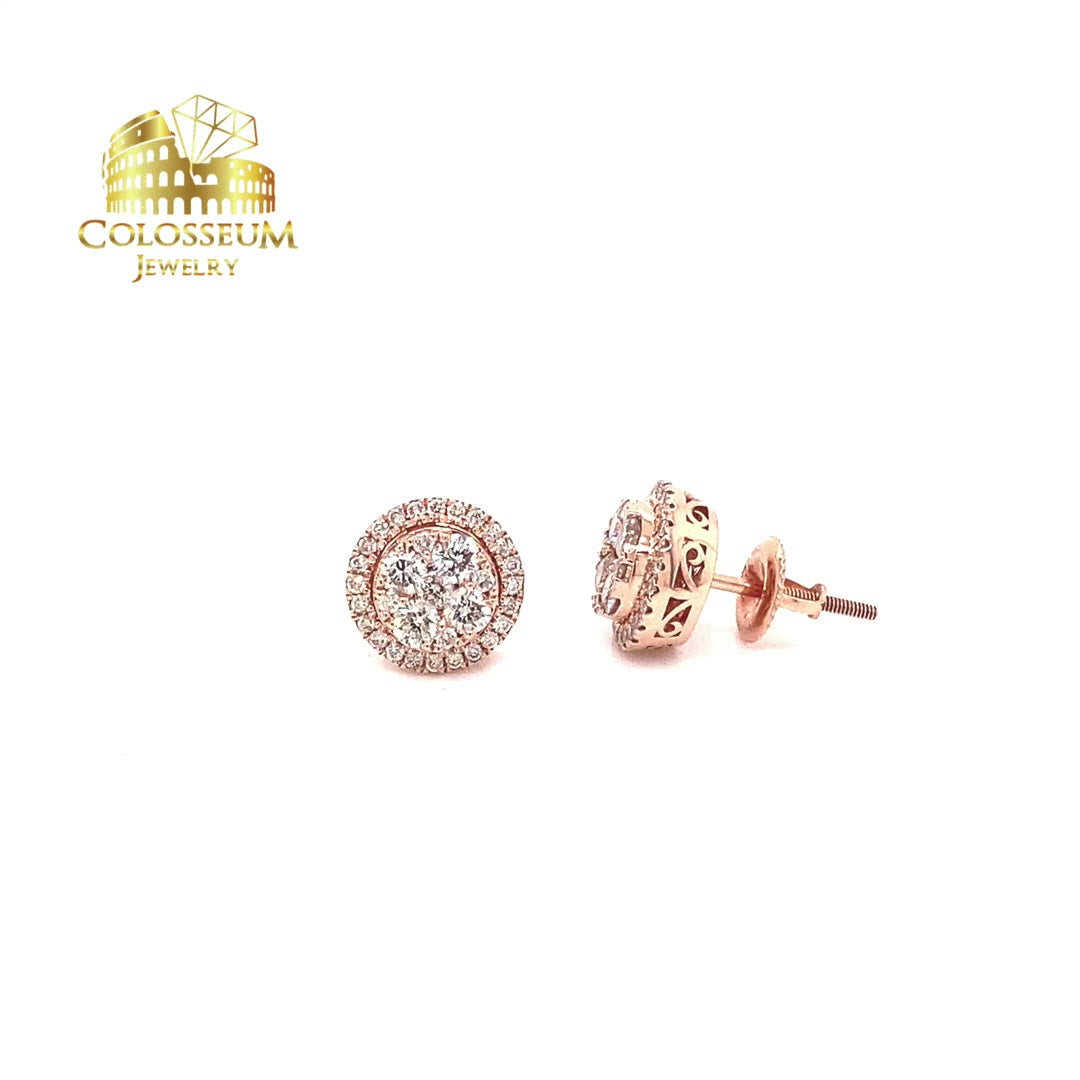 Nothing beats these custom 14K Rose Gold Diamond Halo Stud Earrings.