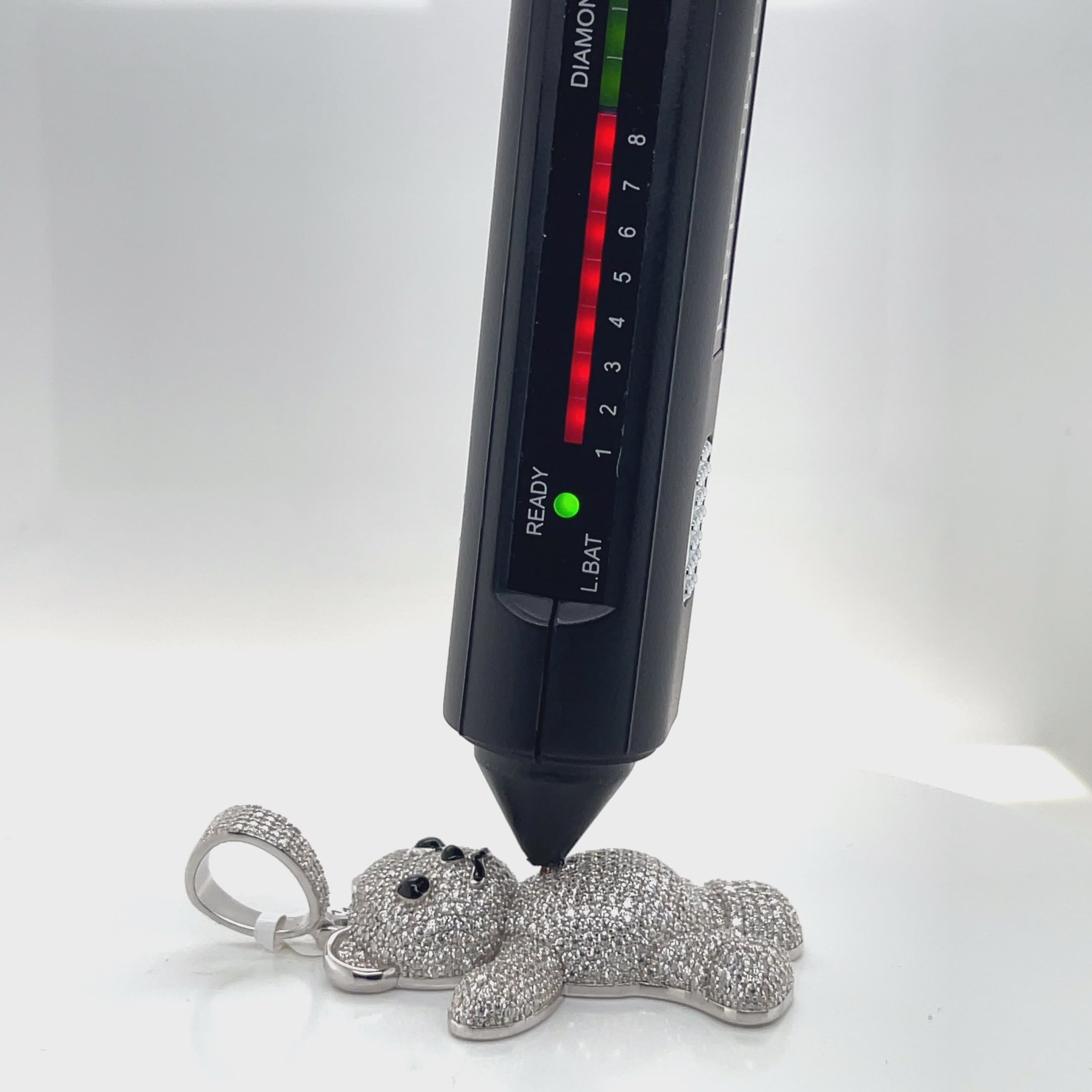 Whether you're celebrating a special occasion or simply indulging in a bit of luxury, this Silver Moissanite Teddy Bear Pendant is sure to bring a smile to your face and a twinkle to your collection.