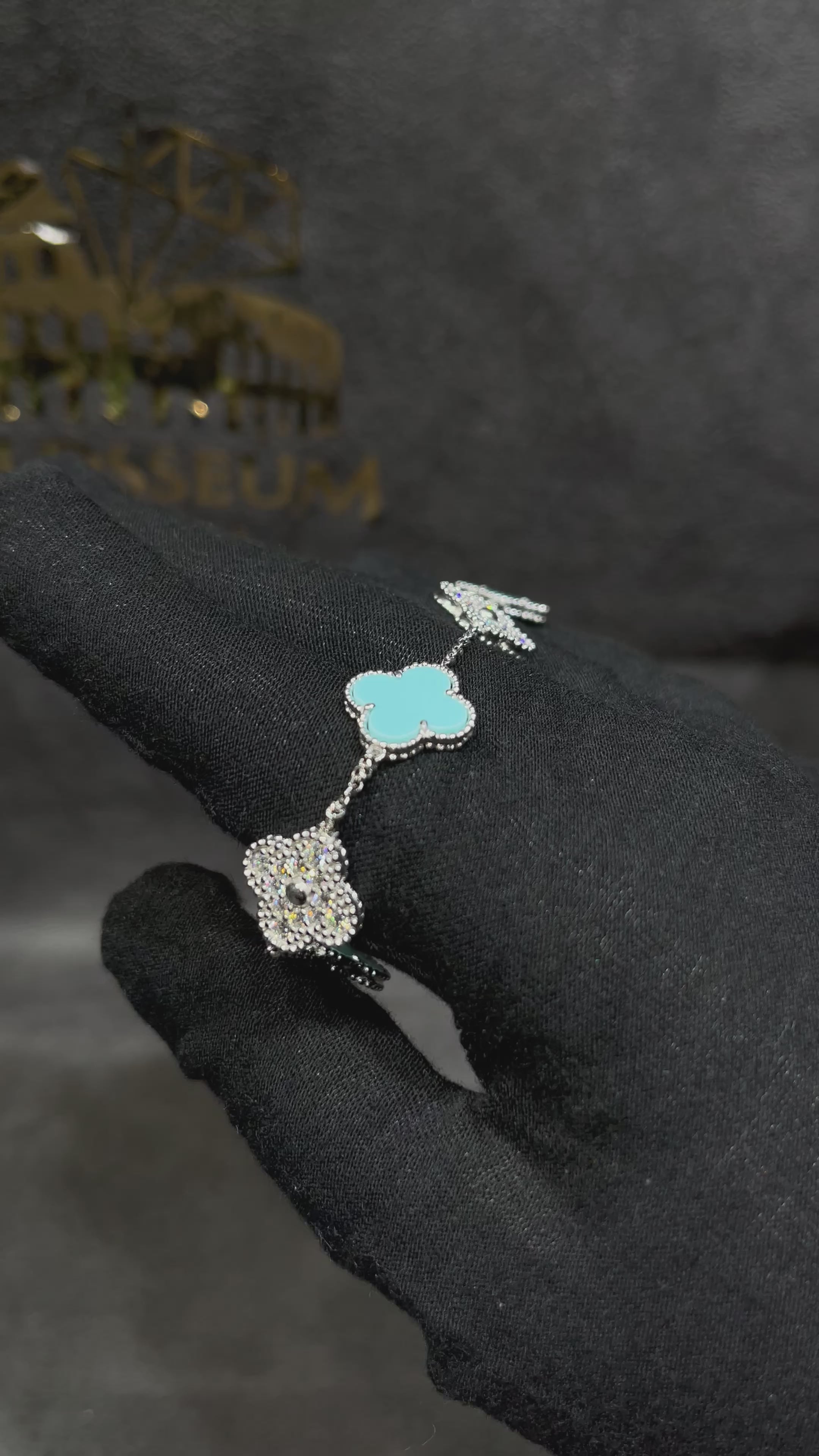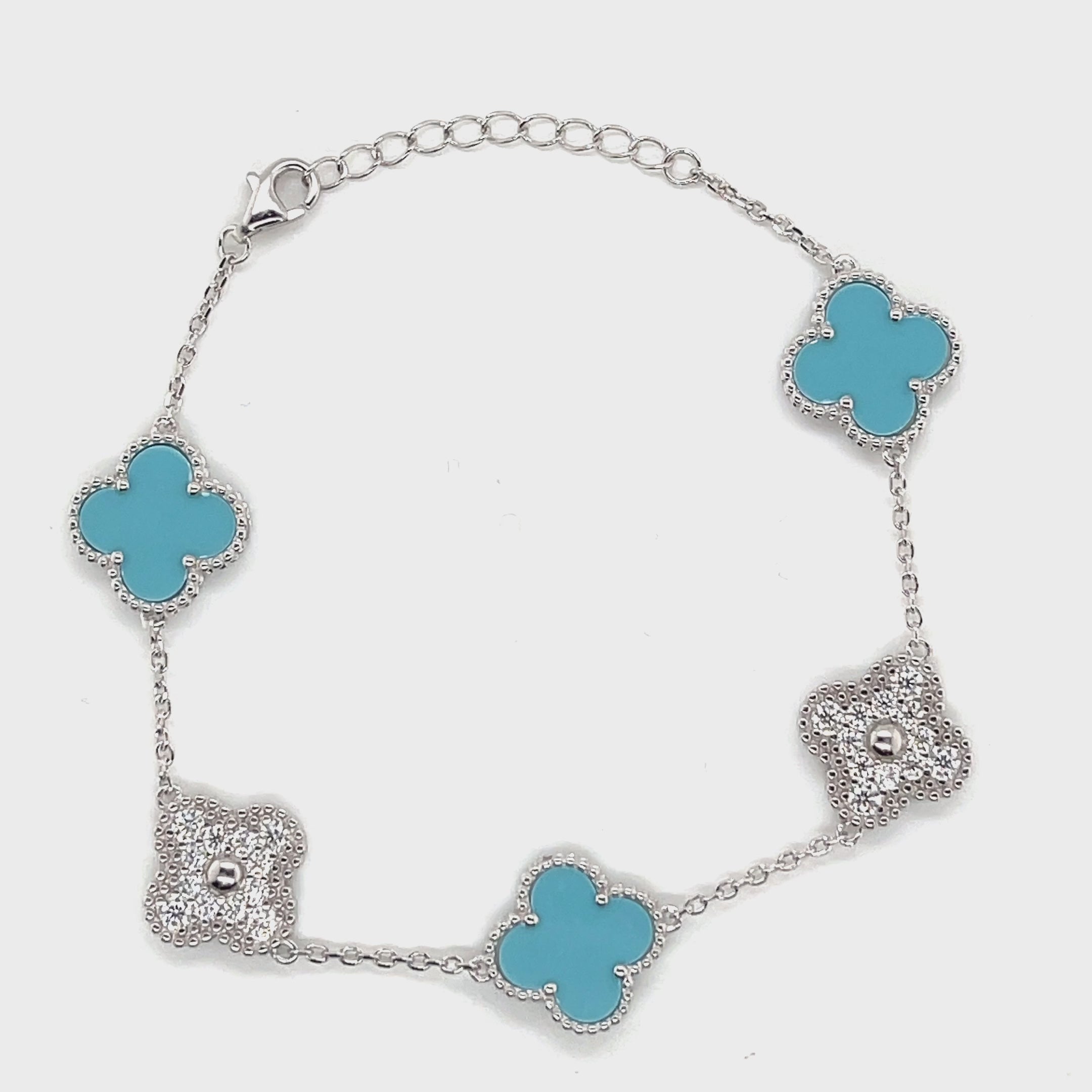 Add a touch of nature's beauty to your collection with this enchanting Silver Baby Blue and Moissanite Clover Bracelet, where timeless elegance meets modern craftsmanship.