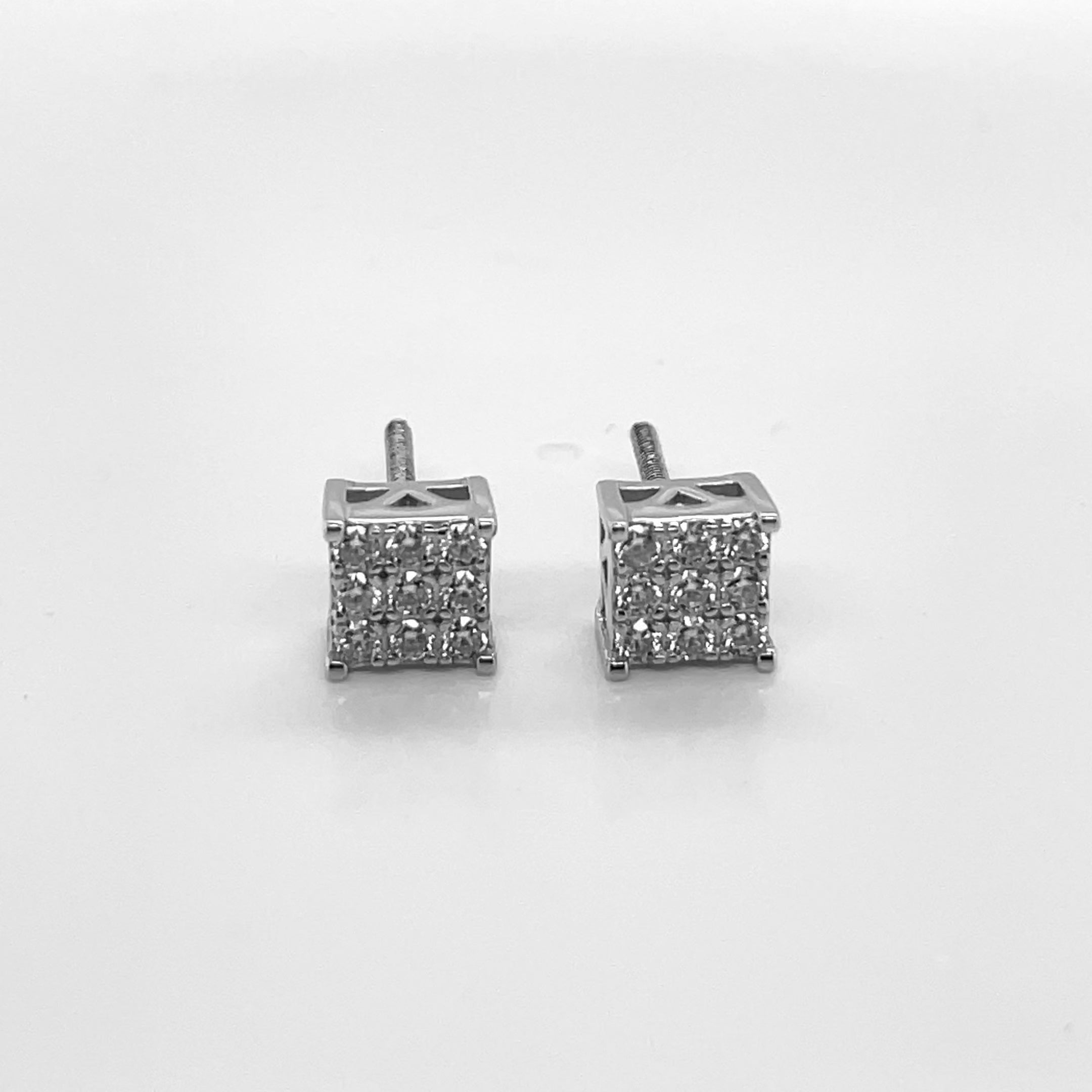 Square Silver and Moissanite Stud Earrings