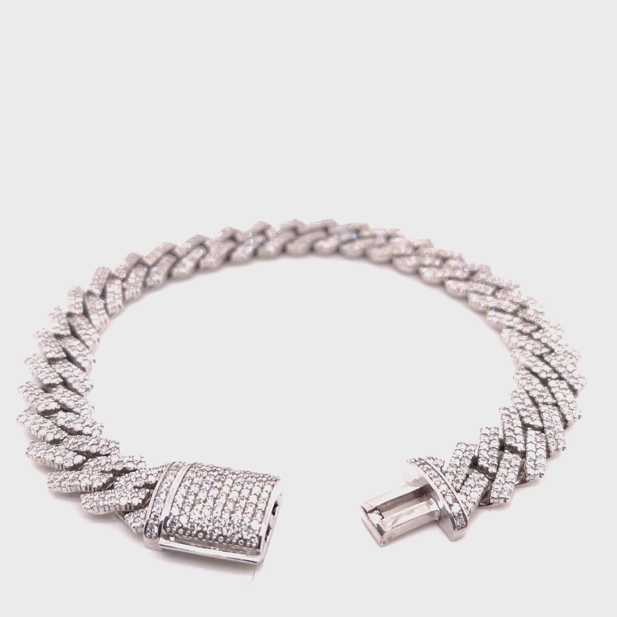 This 11mm Diamond Miami Cuban Bracelet is made of 10K White gold with 10.58 ctw of diamonds.