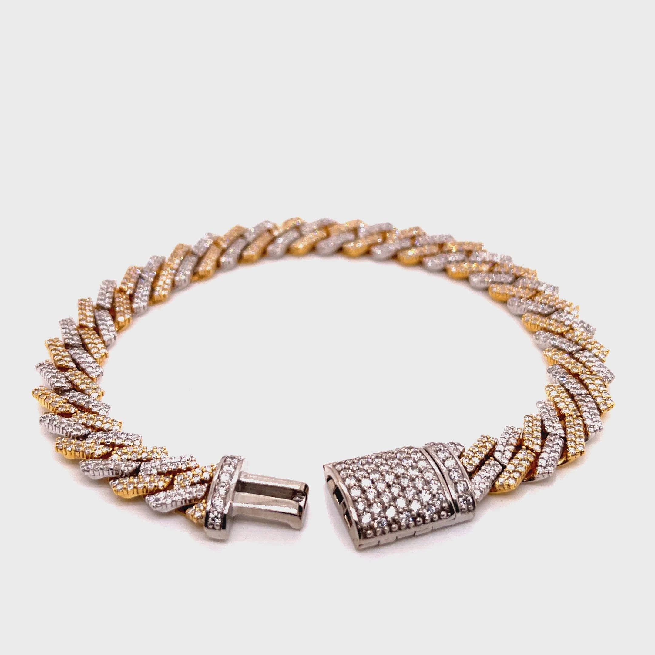 This 10mm Diamond Miami Cuban Bracelet is made of 10K Two Tones Yellow and White gold with 7.25 ctw of diamonds.