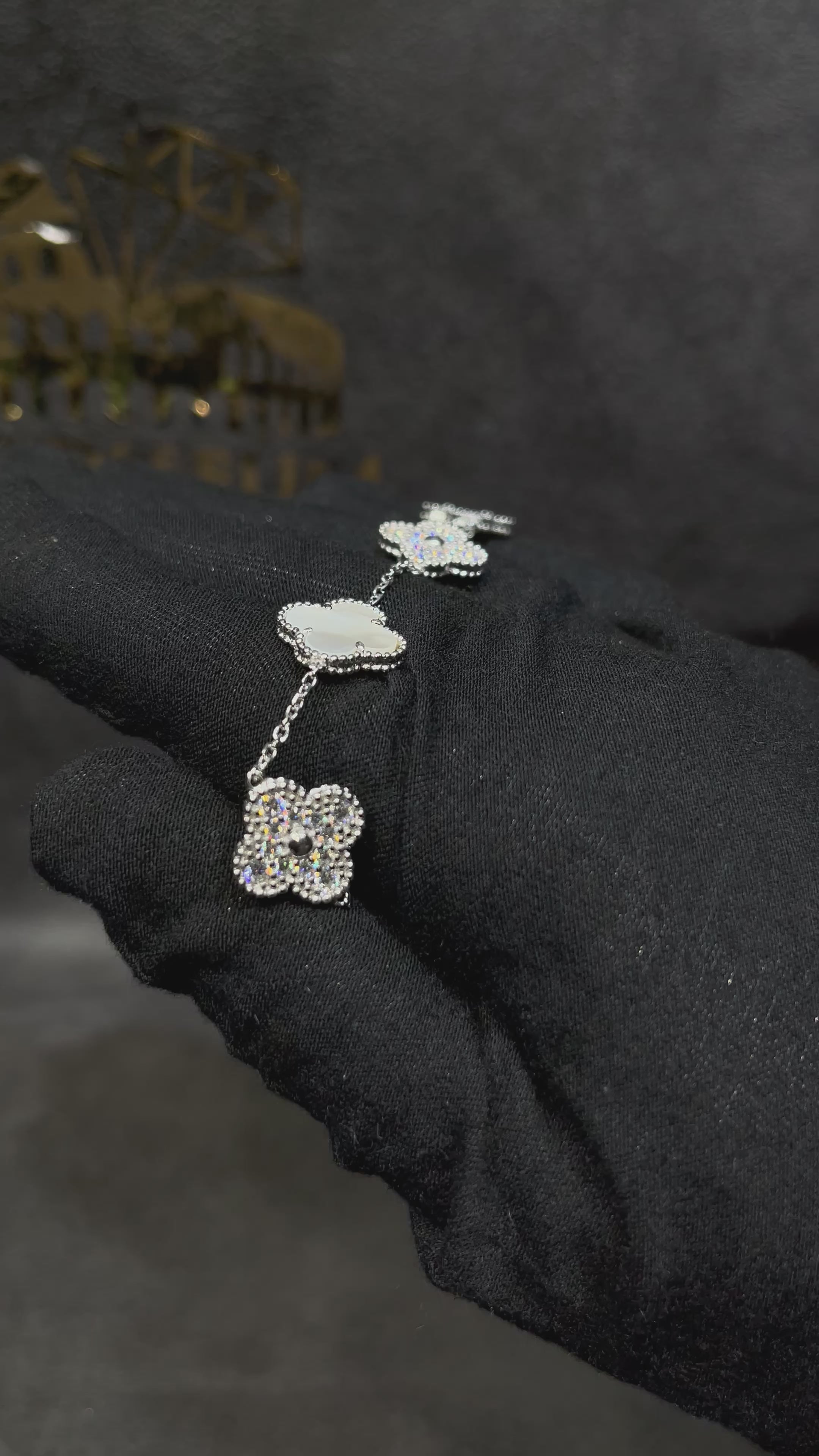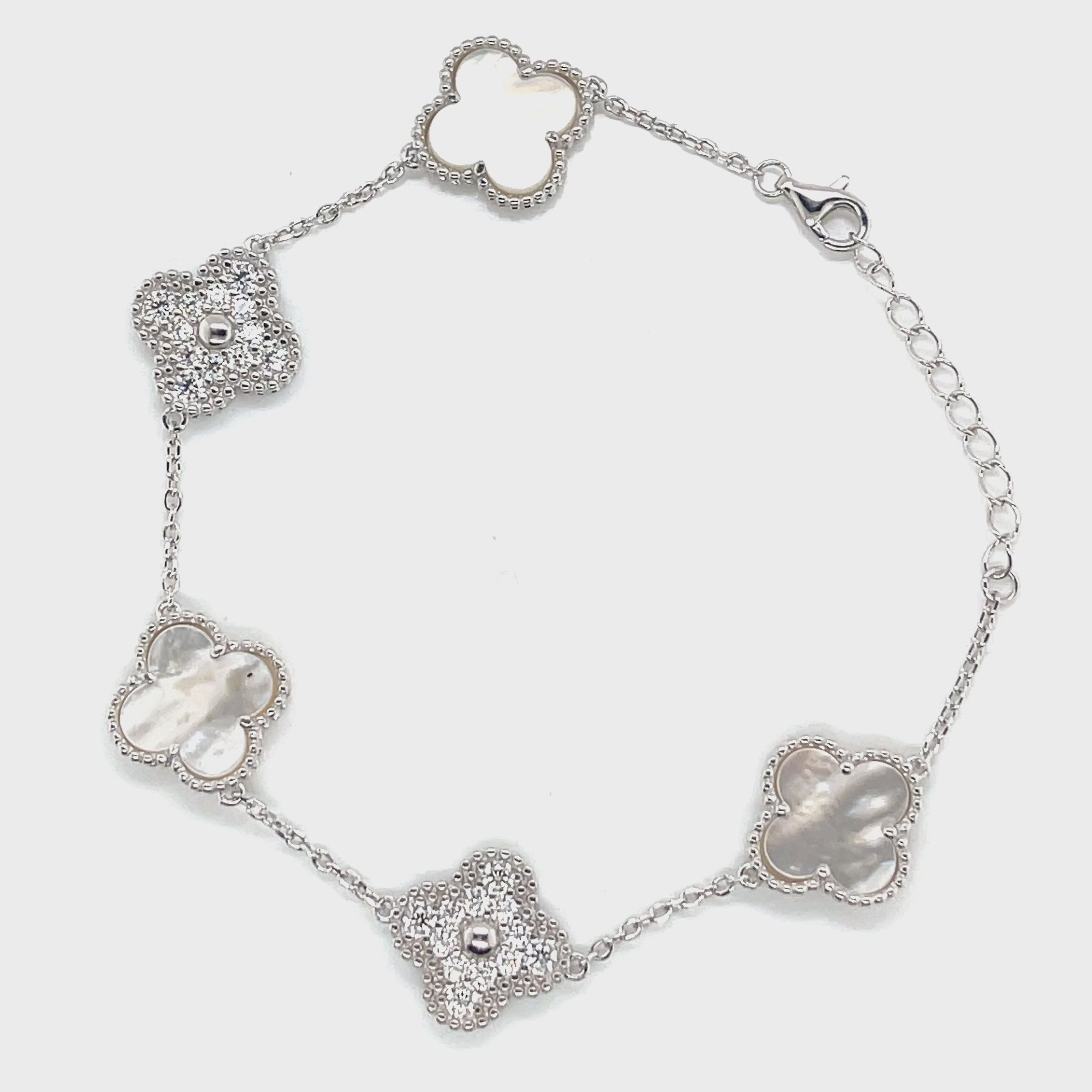 Silver Mother of Pearl and Moissanite Clover Bracelet