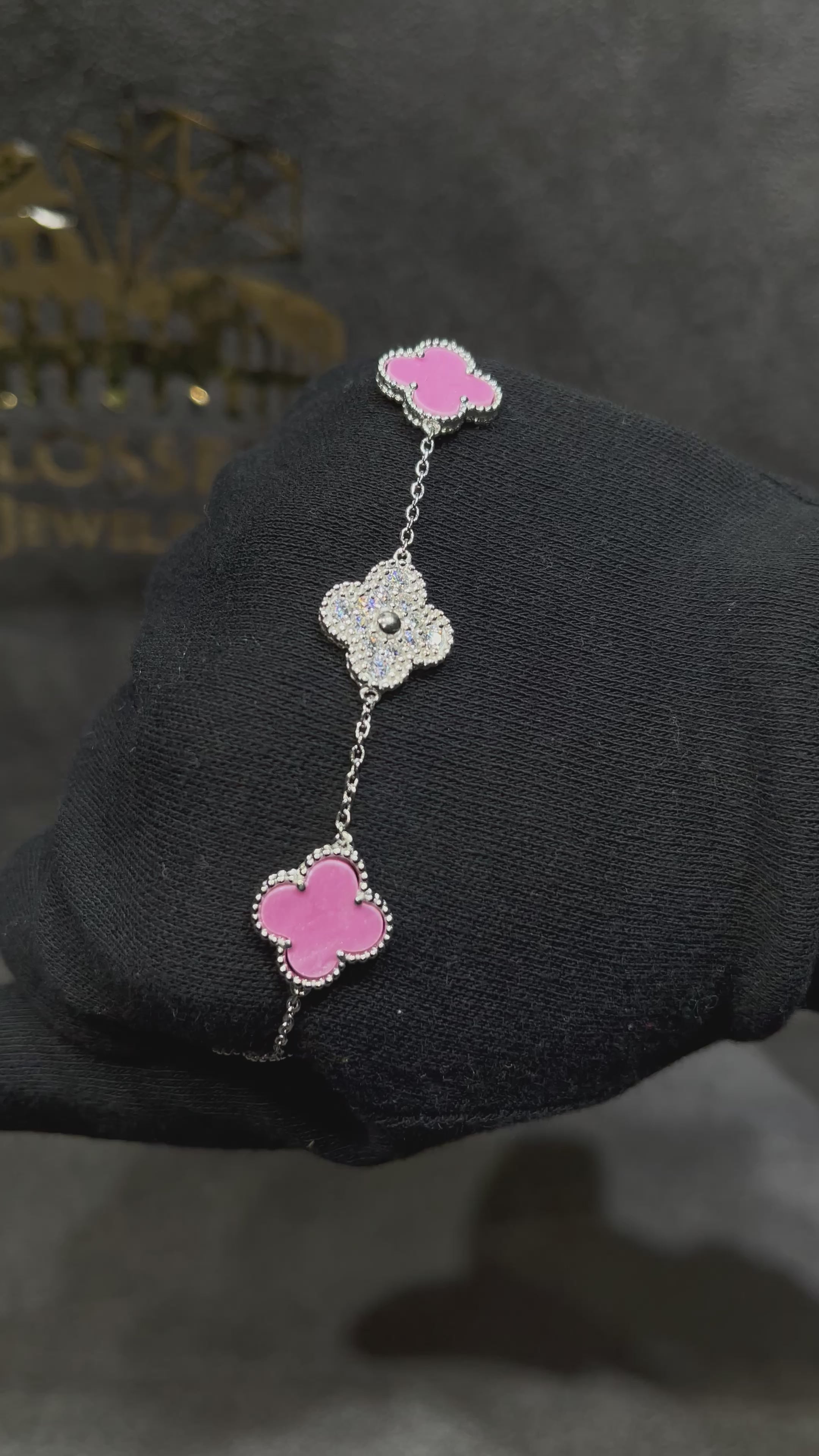 Add a touch of nature's beauty to your collection with this enchanting Silver Pink and Moissanite Clover Bracelet, where timeless elegance meets modern craftsmanship.