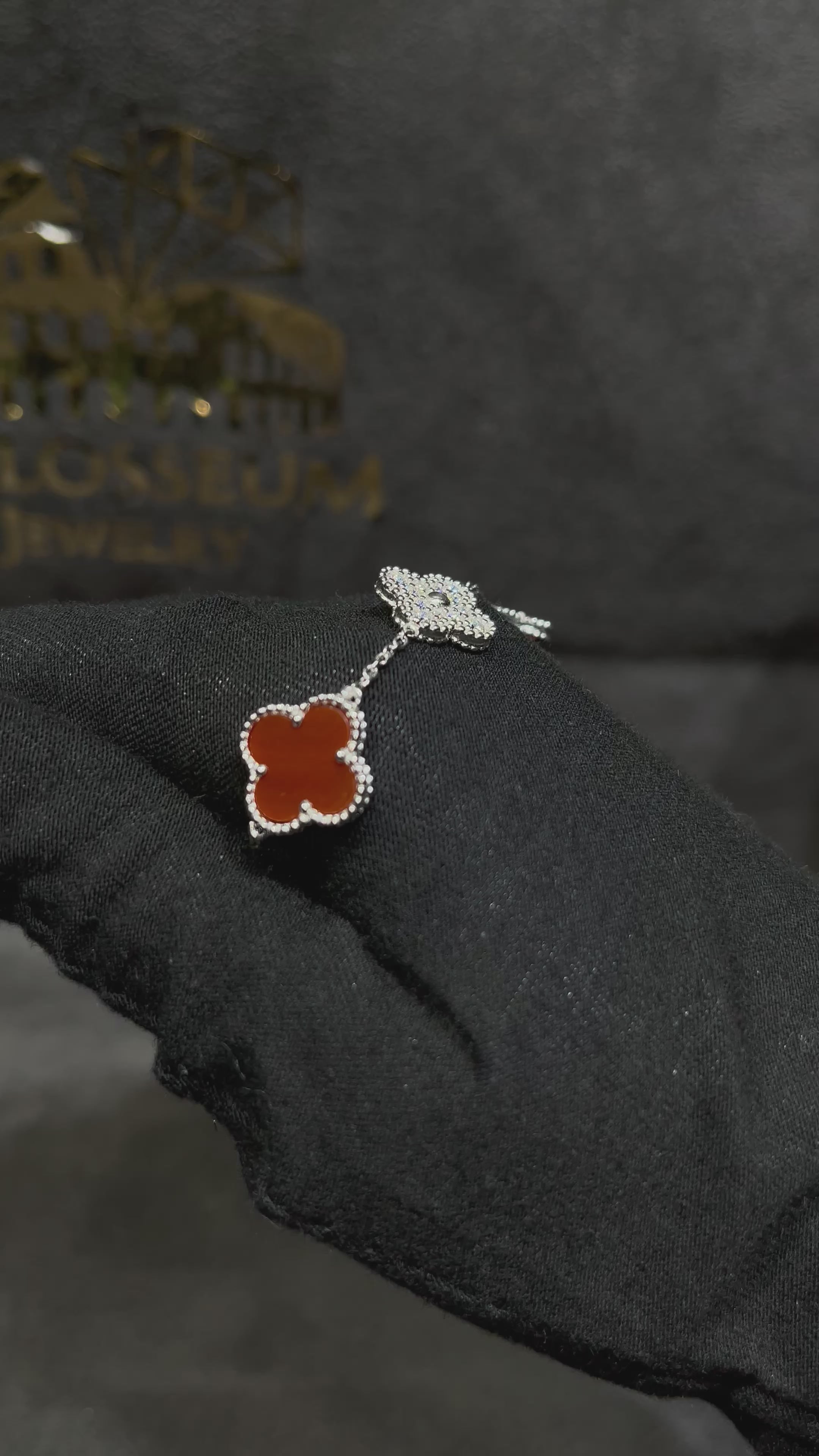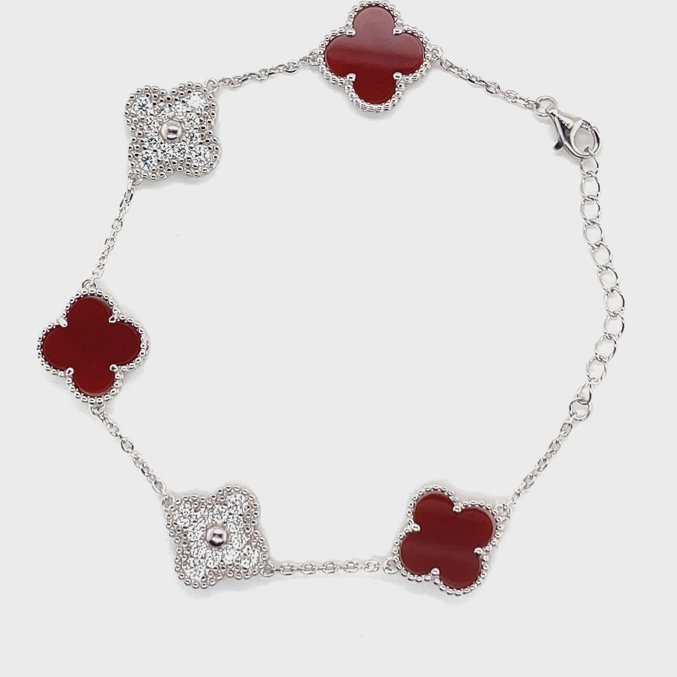 Embrace the elegance of nature with our Silver Red and Moissanite Clover Bracelet, a stunning addition to the Colosseum Jewelry collection. This exquisite piece features a delicate clover design adorned with shimmering moissanite stones, symbolizing luck and serenity.