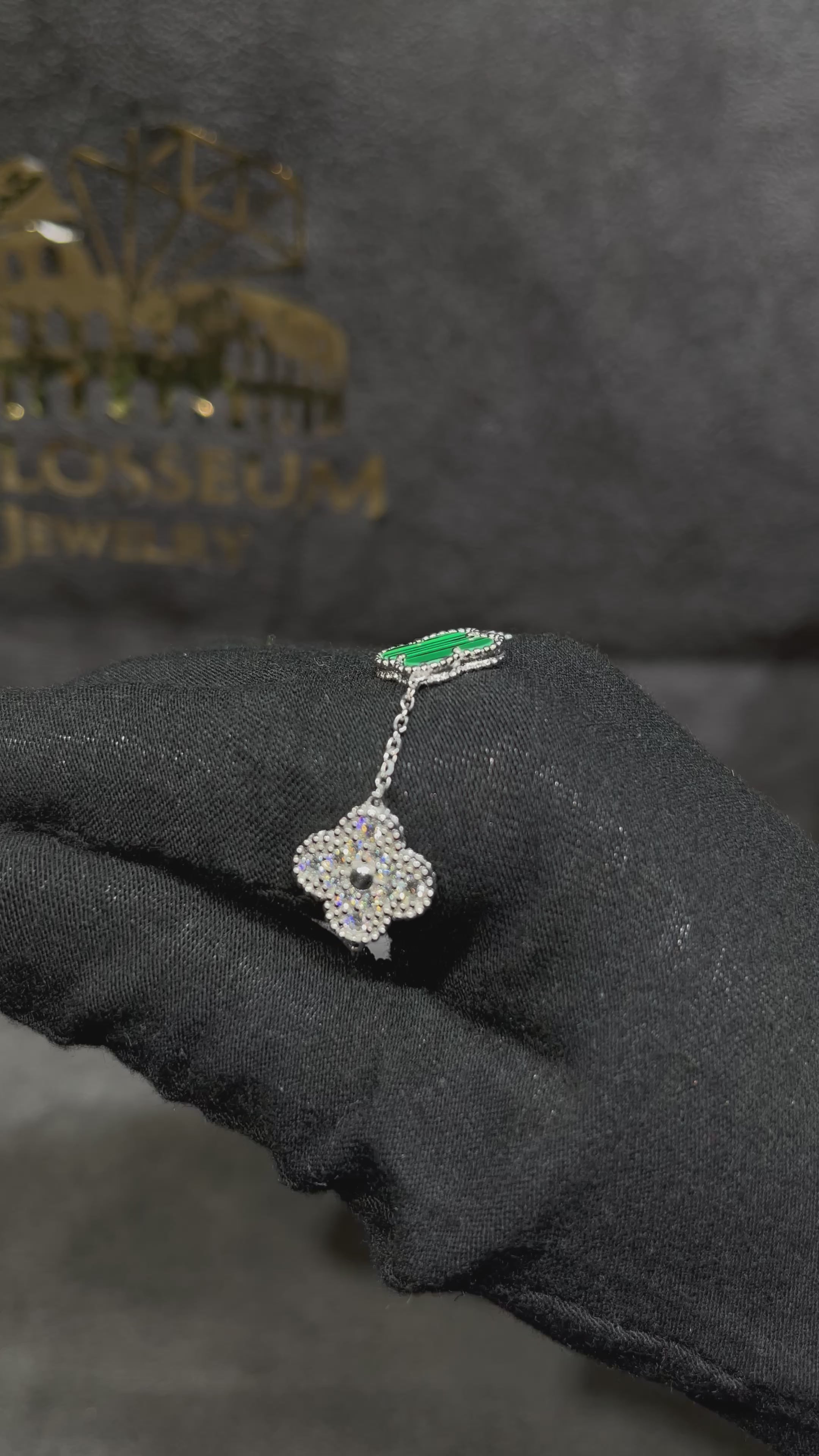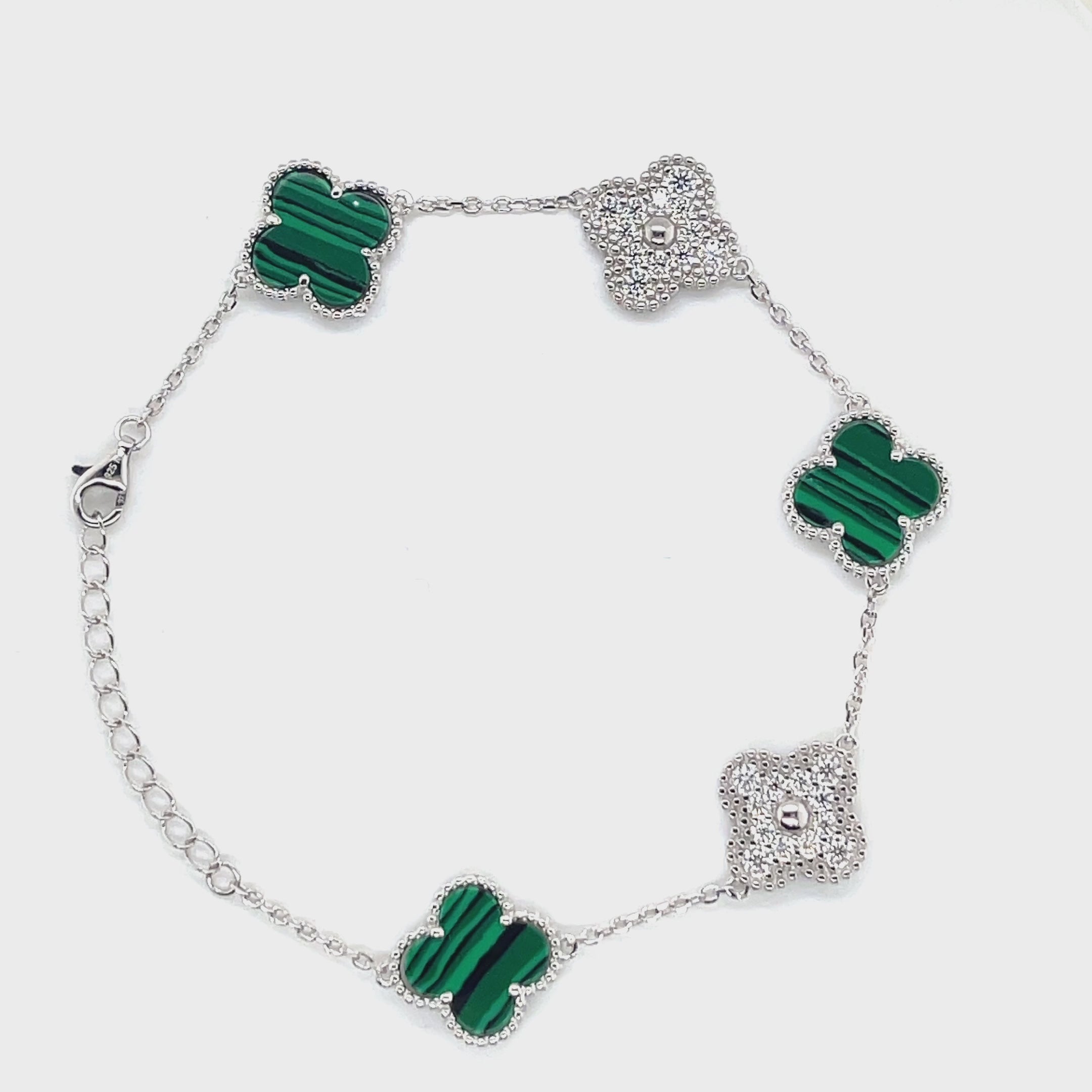 Add a touch of nature's beauty to your collection with this enchanting Silver Royal Green and Moissanite Clover Bracelet, where timeless elegance meets modern craftsmanship.